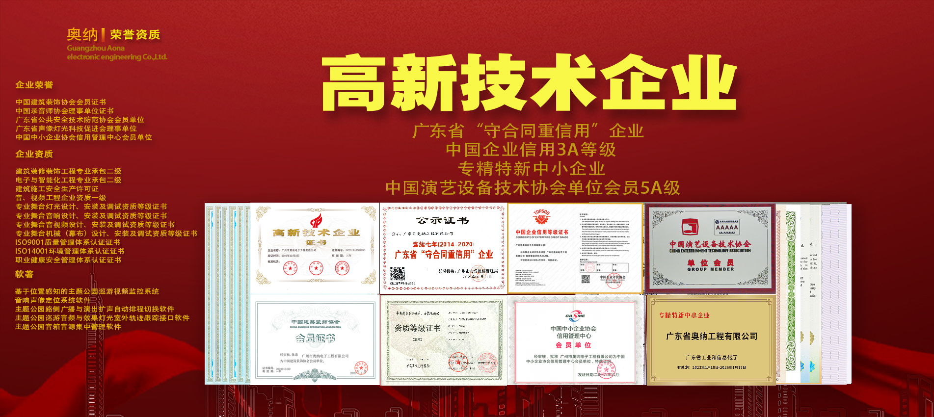 奧納工程深耕文化領(lǐng)域二十載,已成為行業(yè)最具影響力的一站式服務(wù)平臺(tái)。作為一家專注于“聲光像、智能化、聲學(xué)裝修、文化旅游”四大領(lǐng)域的高新技術(shù)企業(yè)奧納旨在為客戶提供從導(dǎo)演創(chuàng)編、顧問咨詢、創(chuàng)意策劃、技術(shù)方案定制研發(fā)、產(chǎn)品供應(yīng)、工程施工售后維護(hù)的全過程服務(wù)。